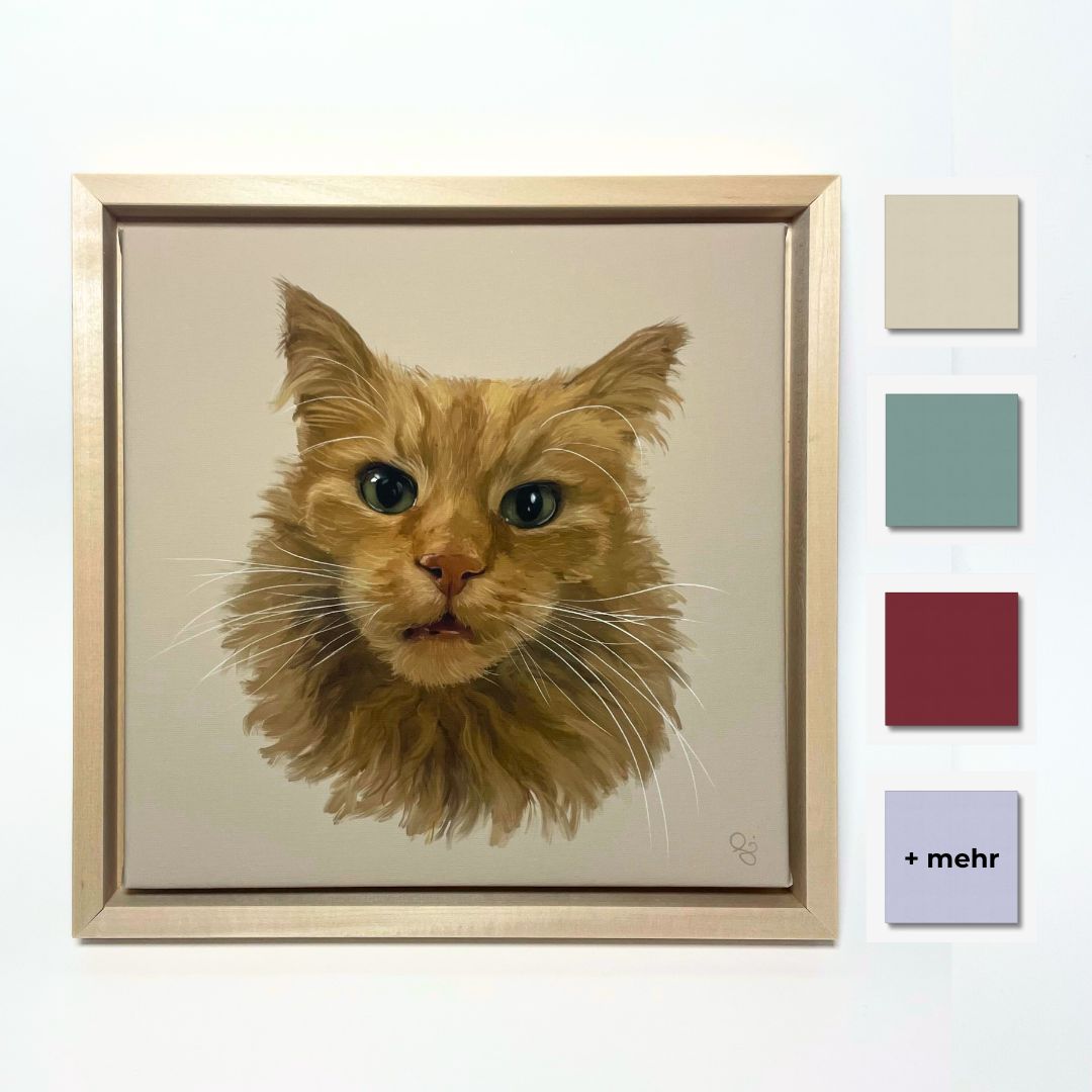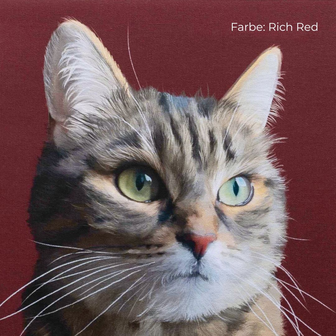Ein personalisiertes Haustierporträt mit einfarbigem Hintergrund wirkt in deinem Zuhause besonders modern und zeitlos. Ob du strahlende Farben liebst oder eher minimalistische Akzente bevorzugst, bleibt ganz deinem Geschmack überlassen. Du hast die Wahl zwischen 15 verschiedenen Farbtönen.