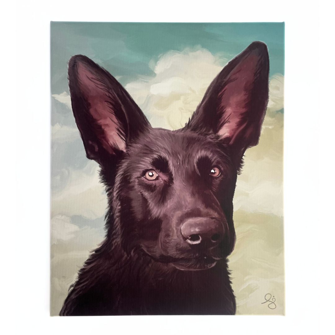 Jedes fur immer Tierporträt male ich digital von Hand, mit tausenden digitalen Pinselstrichen nach deiner persönlichen Foto-Vorlage, bevor es auf hochwertiger Baumwollleinwand in Museumsqualität gedruckt wird.